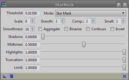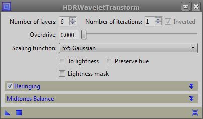 Pix Insight HDRWavelets should be performed on non-linear data, data which has been "stretched" by means of histogram transformation or curves. First I start with the image I'm working on opened. In this example I use NGC2359-11_avg_c_DBE_HST. For this to work on the object only it's necessary to create and use a star mask. Using the "Star Mask" process found using either the top menu "Process", "All Processes", "Star Mask" or the "Process Explorer" , "Mask Generation", "Star Mask", you'll need to create a mask so that you can perform HDRWavelets on just the object of interest such as a galaxy or nebula. You'll need to experiment with creating a star mask but Harry's video will get you a fast start. After creating and applying the mask (by dragging the mask onto the left side boarder of the image you are applying it to. The cursor will turn to a box when it is properly positioned), invert it and then open the HDRWavelets process under "Wavelets". There you will see the following open module: I will usually use the 3x3 or 5x5 Gaussian scaling function and select deringing to keep from getting artifacts. Try the different scaling functions to see which one does the best for you. Save when satisfied with your result.